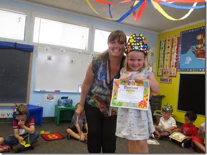 I went on my last solo Costco run for a while, and then the parents were invited to school for the last hour. The little program they put on was adorable. I loved watching them sing their hearts out to the songs I’ve been hearing snippets of at home, and they each got to “walk” and receive a certificate from Miss Mary Ann, who had tears in her eyes from having to say goodbye to all the kids. Such a fun, touching little celebration.